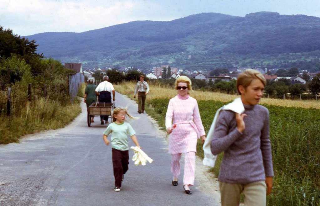 This is actually a photo from our first weekend living there back in the early 70s. Yep, that’s Mom in the hot pink polyester pantsuit. At that time in German fashion history, you might as well have put a neon American flag on yourself with a sign that said, AMERICAN TOURIST HERE!” (Note, I’m hanging back in the pack trying desperately to put out a lame “I’m not not a dang tourist—or with them” GQ vibe. And by the way, my mom is distinctly Deutsch so she quickly got into “the German fashion groove” to the point that when we lived in the famed Rothenberg ob der Tauber town, Japanese tourists sometimes asked to have their picture taken with her.)